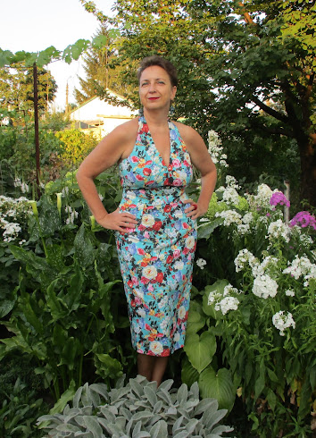 This dress wasn't packed in my this year resort suitcase, as I finished it a few days ago, but it definitely has been included in my sewing list since I was 6 years old:-) Obviously, I don't mean this certain one, it goes about the kind of the garment itself. First time I saw this type of dress in Estonian fashion magazine Silhouette in 1976. My mum could subscribe to it for that only year in some miracle way as in those times it was almost impossible for ordinary people. I have mentioned that edition not once here because it was really my main source of knowledge about fashion and style and their patterns were the first I used along with those I drafted myself in my teens. In our country halter dresses were called sunny ones. It is clear they were meant to be worn mostly in hot summer weather. I still remember that the photo in the magazine showed a long garment, made of green and yellow fabric, only from the back and how it looked from the front the description probably told. Since then I have come across few more alike models but why only now at last made the garment, despite nothing prevented me from making it before, is a riddle for me possible to explain only by the chemistry I felt looking at this pattern:-)